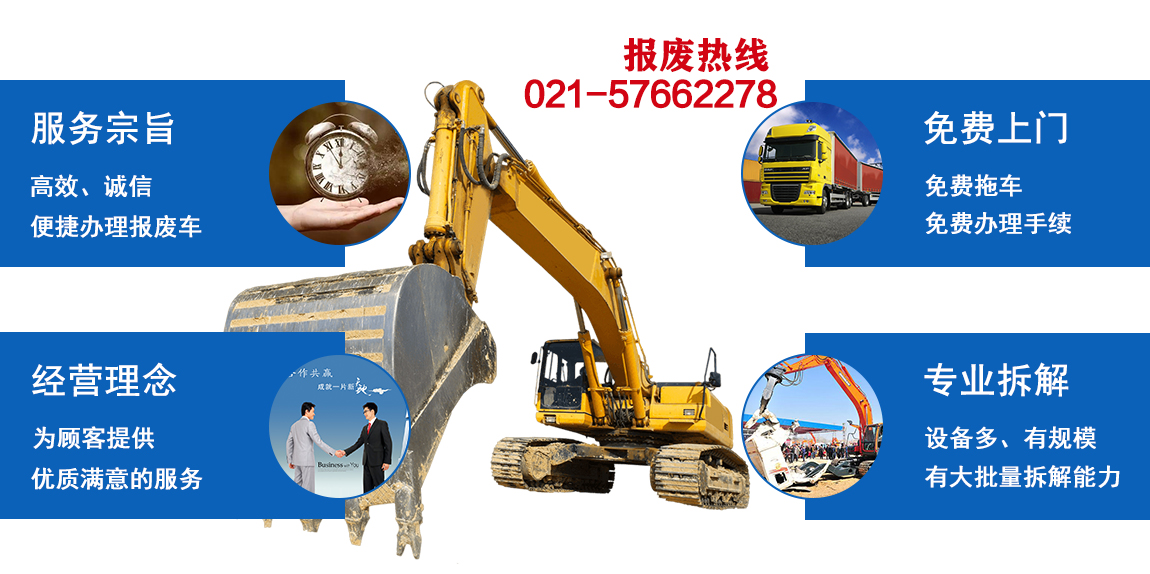上海报废车回收公司专业从事上海车辆报废,外地汽车解体,黑牌车报废,大货车报废,军车报废,事故车报废等车辆报废解体业务,上海机动车回收公司为了全方位满足上海市各区报废车主办理业务,为了提供上海报废汽车解体更好的服务,立足社会,不仅开展免费拖车,免费办理报废汽车解体手续,免费申请报废指标,而且还推出了汽车报废解体全程服务项,以“高效,便捷办理报废车”为服务宗旨。只需您拨打电话,便可享受汽车报废高效便捷服务。